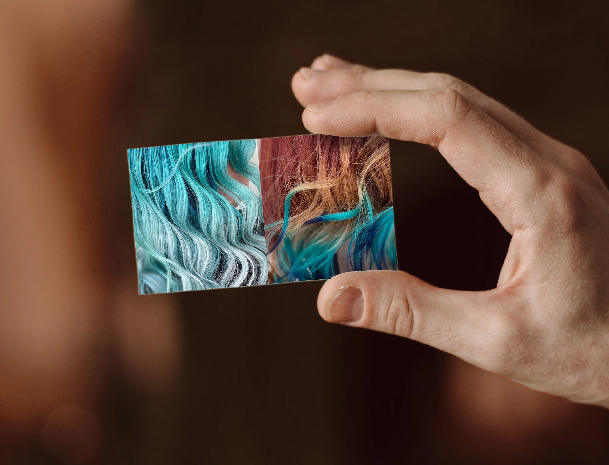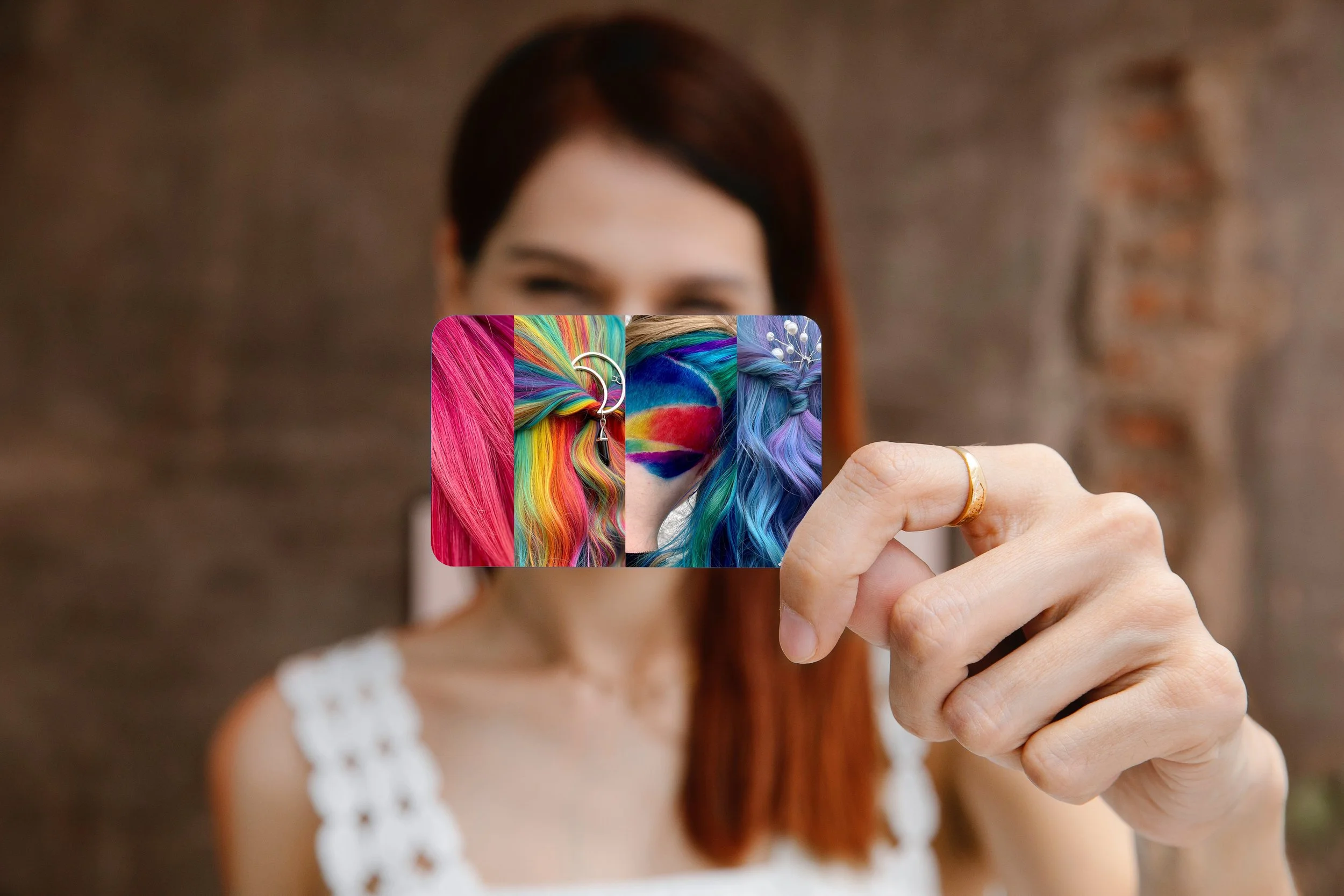 Not all of your clients are alike. Different imagery might appeal to different people. Therefore, we decided to create 2 cards showcasing Christine’s mastery of color. One is bold and vibrant. The other, while still colorful, is more subdued - because hey, over the top colors might not be for everyone, and this card shows how you can incorporate color into your hair too!
