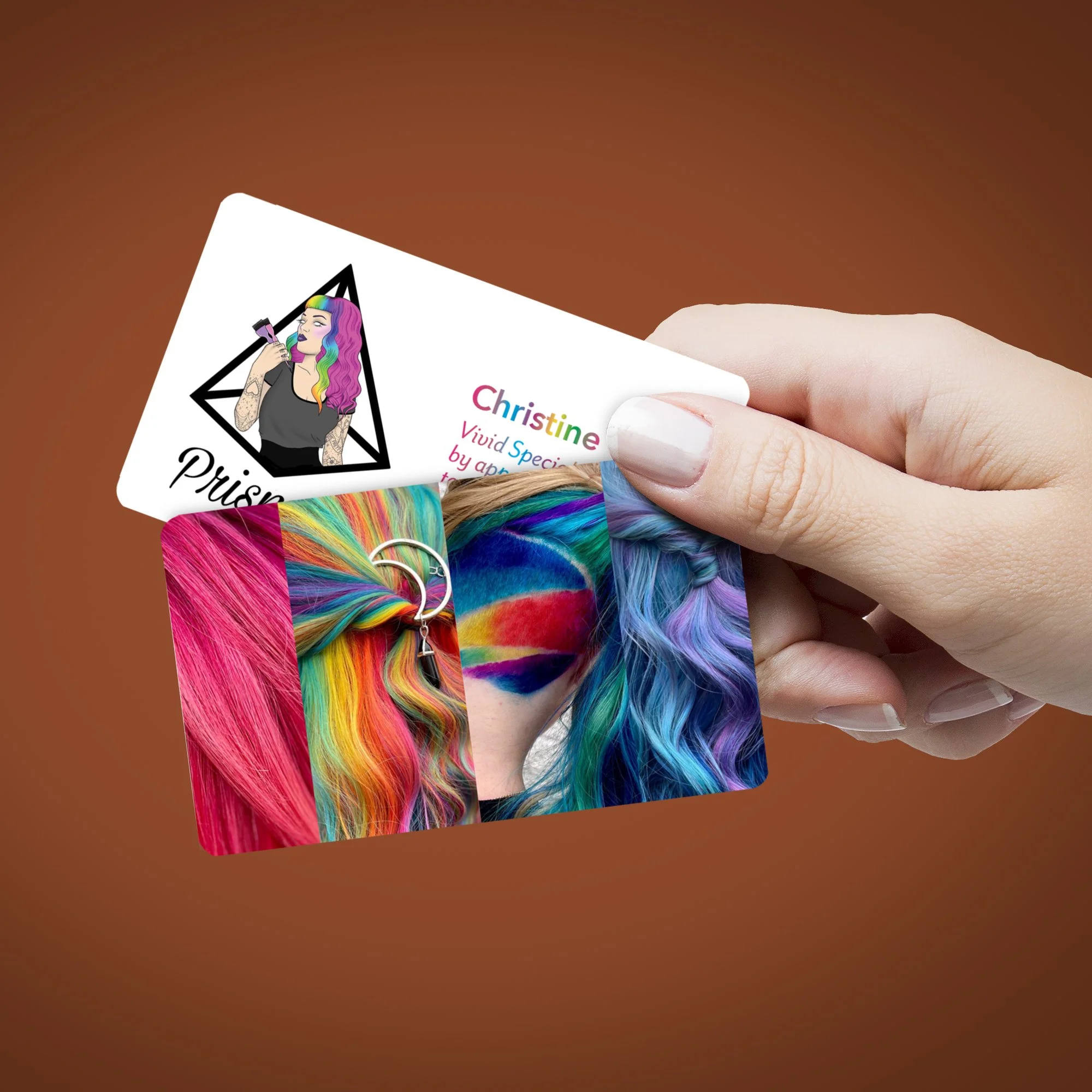 With a rebrand, comes new business cards! It was a privilege to work with Christine again to create these new cards for her. Vivid, bold colors are her specialty. Wait! You haven’t looked at her Instagram page yet? Go give it a look real quick, I’ll wait. As you see, Christine is quite simply, magical with hair color.